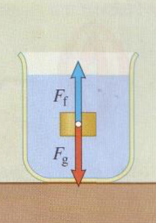 A halacskát helyettesítse a sárga téglatest. A képen a piros színű gravitációs erő ( Fg) ugyanakkor, mint a felhajtó erő (Ff), ezért a test nem mozdul. Az is fontos, hogy a test sűrűsége ugyanakkora legyen, mint a folyadék sűrűsége. Így van ez a halacskával is.