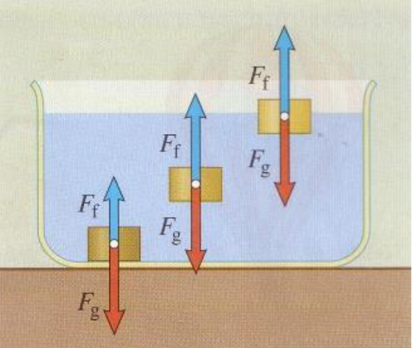 Az ábrán látható testek  mindegyikére hat a gravitációs erő és mindegyik test valamilyen mértékben benne van a vízben, így  a felhajtó erő is hat rá. Később meg fogjátok látni, hogy a sűrűségek is szerepet játszanak.