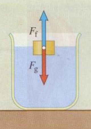 A hajót helyettesítse a sárga téglatest. A képen a piros színű gravitációs erő ( Fg) egyenlő, a felhajtó erővel (Ff), ezért a test nem mozdul. Az is fontos, hogy a test átlag sűrűsége kisebb. mint a folyadék sűrűsége. Így tapasztalható ez a hajó esetében is.
