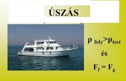 FELADAT: az erők és a sűrűségek relációit jegyzeteld le a füzetedbe úszás címszó alatt!